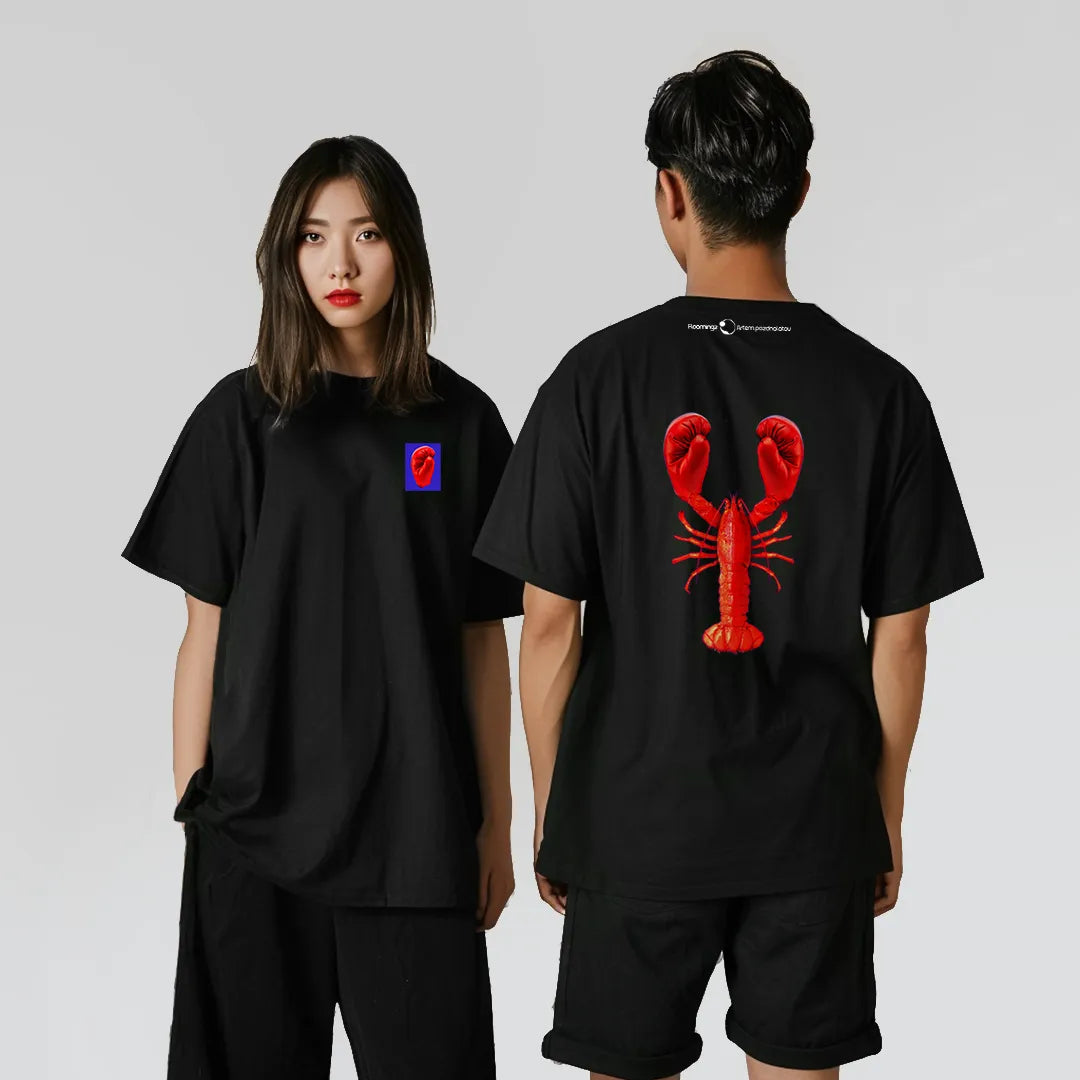 Lobster Fighting - oversized black t-shirt