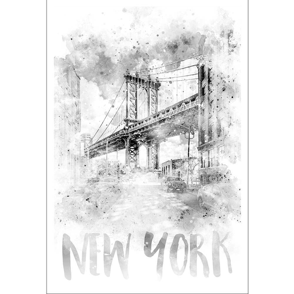 Monochrome Art NYC Manhattan Bridge Watercolor